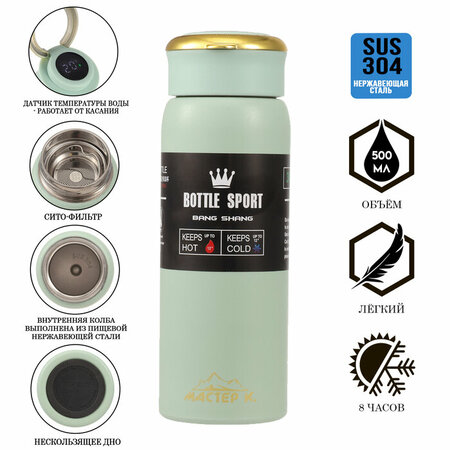Компактный объём и комплектация с датчиком и ситом делают этот термос удобным спутником в путешествиях, на работе и в повседневных прогулках.