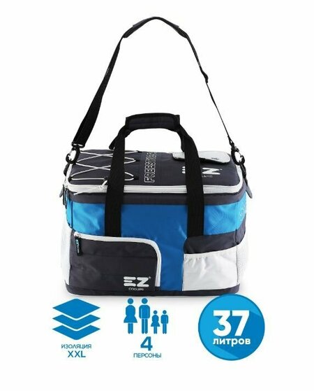 Сумка-холодильник EZ Freestyle 54 Blue (37л) • Клапан быстрого доступа на липучке для наименьшей потери холода • Ручки для переноски с мягким захватом-фиксатором, ремень на карабинах регулируется по длине • Мягкая плечевая подложка с антискользящей поверхностью • Гигиеничный, герметичный, отражающий слой PEVA, безопасный для контакта с продуктами • Большой карман на молнии, карман на липучке и карманы-сетки для аксессуаров • Съемное дно для лучшей формы • Липучки-фиксаторы для удобного складывания • Многослойная изоляционная система – гарантия надежной работы Клапан быстрого доступа на крышке открывает зональный доступ к необходимым продуктам и предотвращает быструю потерю холода, неизбежную при полном открытии крышки. Ручки сумки с мягким захватом и съемный ремень на карабинах, регулируемый по длине, обеспечивают комфортный перенос сумки. Плечевой ремень оснащен мягкой подложкой с нескользящим покрытием. Сумки EZ Freestyle с клапаном быстрого доступа на крышке обеспечивает длительное сохранение температуры и свежести продуктов и напитков. Технология оптимальной изоляции обеспечивает максимальную производительность работы сумки при сохранении мягкости ее стенок и позволяет использовать способ вертикального складывания в пассивном режиме. Серия выполнена в спортивном дизайне с использованием практичных и легких в уходе внешних тканей и внутренней гигиеничной ткани PEVA, безопасной для перевозки и хранения продуктов. Внутренние швы сумки абсолютно герметичны, благодрая чему обеспечивается возможности гигиеничного ухода за изделием при случайном проливании напитков. Съемное дно сумки позволяет удобно фиксировать ее в сложенном виде, а также создает дополнительную жесткость формы при перевозке продуктов в багажнике автомобиля.
