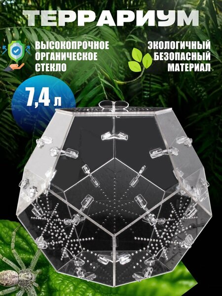Террариум - аквариум из высокопрочного органического стекла подходит для содержания экзотических беспозвоночных , земноводных и насекомых. Клетка производится из высококачественных материалов. Акриловое стекло кристально прозрачное имеет качественную шлифовку кромки и прослужит дольше чем террариум пластиковый . Емкость в основании герметична. Верхняя крышка сетка с отверстиями 2 мм удобна при чистке и кормлении. Над ней можно установить УФ лампу или греющий светильник Контейнер для черепахи имеет хороший обзор для наблюдения за вашим питомцем. В таком домике прекрасно будут себя чувствовать улитки гекконы , лягушки , сухопутные черепахи , пауки , ящерицы , змеи , хамелеоны и другие маленькие животные. Мини-контейнер можно использовать для флоры и понравится любителям тропических растений таких как орхидея или суккулентов. Он сборный в виде конструктора. Сборка происходит без применения клея. Необходимо располагать так , чтобы он не мешал проходу; место , где он стоит , должно быть достаточно освещенным. Чтобы он служил украшением интерьера , необходимо установить на видное место. Можно расположить клетку на стене , на окне , рядом с дверями или в других местах вашего жилища. Если вы ищете оригинальный подарок для своих друзей, родных и близких, то террариум прекрасный выбор на любой повод. Террариумистика это живой уголок природы и украшение вашего дома или офиса. Пресмыкающиеся - это сухопутные животные, которые могут стать хорошим питомцем для детей, но взрослые всегда должны контролировать процесс общения вашего ребенка с животным. Террариум для эублефара, является домом, так как этот вид самый распространенный из террариумных животных. Террариум для ахатин, достаточно грунта и элементов декора, ахатины предпочитают жить в сухом и влажном климате, сухопутная черепаха любит, когда на дно насыпают песок или землю, кладут камни, мох, сажают растения. В террариумах предусматриваются вентиляционные отверстия и щели для поступления и циркуляции свежего воздуха.
