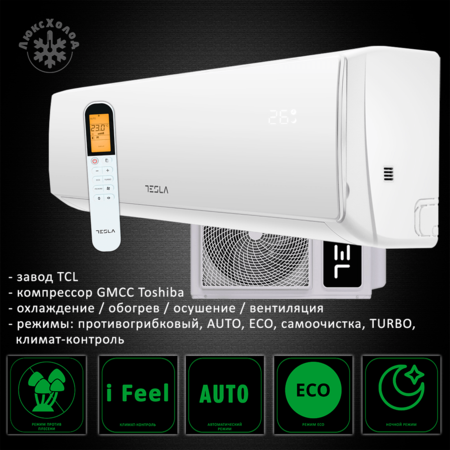Сплит-система Tesla TT27X71-09410A Серия TARIEL эффективна в помещениях площадью до 25 кв. метров. В линейке мощностей это наиболее популярная модель, т. к. универсальна и проста в применении. Достаточно производительна: способна охладить (обогреть) как комнату средних размеров или офисное помещение, так и небольшую гостиную или торговый зал. Получите бесплатную консультацию по подбору кондиционера у нашего специалиста в online-чате. ***Технические характеристики и внешний вид оборудования, приведенного в данном каталоге, могут быть изменены производителем без предварительного уведомления.