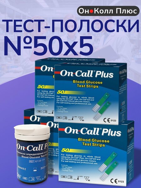 Тест-полоски Он Колл Плюс (On Call Plus) - это высокая точность, простота в применении, выгодная цена. Тонкие, компактные экспресс-тесты для контроля глюкозы в крови созданы компанией ACON International Inc. (США) и соответствуют жестким требованиям FDA. И это одна из самых доступных систем самоконтроля. Поставляются в пластиковых контейнерах по 50 штук. Предназначены для использования совместно с глюкометром On Call Plus в домашних условиях, а также в медицинских учреждениях. Преимущества тест-полосок Он Колл Плюс для анализа необходимо 0,5 мкл крови; анализ занимает всего 10 секунд; электрохимический способ измерения, калибровка по плазме; кровь наносится с торца, и за счет капиллярного эффекта используется только необходимый объем; самая доступная цена на тест-полоски Он Колл Плюс; срок хранения тест-полосок: 2 года. Простота проведения анализаАнализ максимально упрощен и делается всего в несколько шагов: вставляем тест-полоску в глюкометр, ждем, пока он включится (это займет несколько секунд); на специальное окошко наносим каплю крови - она автоматически абсорбируется в нужном объеме; в результате реакции глюкозы и фермента генерируется слабый электроток, который фиксируется глюкометром. Обратите внимание! Образец крови необходимо наносить только с одной стороны, где предусмотрено заборное окошко. Если нанести материал на обратную сторону, результат может быть неправильным. Тест-полоски On Call Plus нужно хранить только в оригинальном контейнере - не перекладывайте расходники в другую емкость. Всегда следите, чтобы крышка была плотно закрытой. После первого открытия пластикового бокса срок годности сокращается до 90 дней. Поэтому запишите дату вскрытия и не используйте расходный материал для глюкометра после завершения этого периода. Правила хранения полосок On Call PlusХранить тест-полоски Он Колл Плюс необходимо в сухом помещении. Температура окружающей среды должна быть в пределах от +15 до +30°С. Недопустимо замораживать, перегибать, разрезать пластинки. При повторном использовании расходников точность анализа не гарантирована. Не следует держать полоски и глюкометр рядом с нагревательным приборами, отбеливающими, чистящими веществами, в комнатах с высокой влажностью, (ванная, сауна, бассейн).