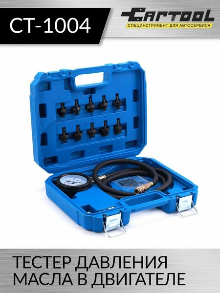 Тестер давления масла в двигателе предназначен для диагностики системы смазки двигателя, в частности измерение дваления масла. Отклонение уровня давления масла от норм может привести к перебоям в работе двигателя, а так же к его поломке. Данный прибор позволяет тестировать двигатели большинства легковых автомобилей и легких грузовиков. Набор укомплектована различными адаптерами и переходниками к тестеру давления масла, с помощью которых возможно подключение тестера. В наборе с тестором штуцера с метрической и дюймовой резьбой. Комплектация тестера для измерения давления масла в двигателе: - Адаптеры, подходящие для отечественных и импортных двигателей - Манометр в обрезиненном кожухе со шкалой измерения 0 – 140 PSI / 0 – 10 Бар - Гибкий шланг с фитингами на концах для быстрого и безопасного отключения - Пластиковый кейс для переноски и хранения Номенклатура адаптеров для подключения тестера давления масла двигателя (параметр резьбы): М10Х1.0 - 1 шт; М12Х1.5 - 1 шт; М14Х1.5 - 1 шт; М16Х1.5 - 1 шт; М18Х1.5 - 1 шт; R1/8 DIN 2999 - 1 шт; 1/8-27 NPT - 1 шт; 1/4-18 NPT - 1 шт; 3/8-20 UNF - 1 шт; 1/2-20 UNF - 1 шт; Угловой адаптер - 1 шт.