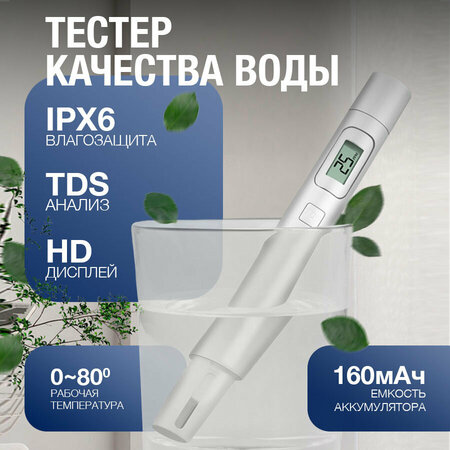 Удобный и портативный, этот тестер качества воды может быть использован как в домашних условиях, так и на природе, например, во время путешествий или кемпинга. Не упустите возможность обеспечить свою семью чистой и безопасной водой!