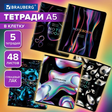 Представляем вам комплект тетрадей А5 48л. BRAUBERG, который станет отличным выбором при пополнении канцелярии для школы и офиса. Каждая тетрадь в этом наборе включает 48 листов офсетной бумаги плотностью 60 г/м2, что позволяет удобно и легко записывать ваши мысли и идеи. Линовка в клетку с полями идеально подходит для студентов, школьников и офисных сотрудников, стремящихся достичь аккуратности в записях и заметках. Гладкая глянцевая обложка тетрадки из мелованного картона с надежной скрепкой обеспечивает долговечность и привлекательный внешний вид. Этот набор тетрадей в клетку 48 листов не только практичен, но и стильно оформлен в уникальном дизайне MAGICAL, что делает его отличным дополнением к канцелярии для учебы и работы. Выберите общие тетради 48 листов в клетку для комфортных записей и организуйте свои идеи с легкостью! • Количество листов: 48. • Линовка блока: клетка. • Тип скрепления: скоба. • Материал обложки: картон. • Формат: А5. • Наличие полей: да. • Серия: А5 картон 48 л. • Дизайн: MAGICAL. • Цвет бумаги блока: белая. • Плотность внутреннего блока: 60 г/м2. • Белизна: 100 %. • Тип спецэффектов на обложке: сплошной лак. • Количество дизайнов в минимальной упаковке: 5 шт. • Количество дизайнов в транспортной упаковке: 5 шт. • Длина: 205 мм. • Ширина: 165 мм. • Индивидуальная упаковка: да. • Артикул производителя: 404944.