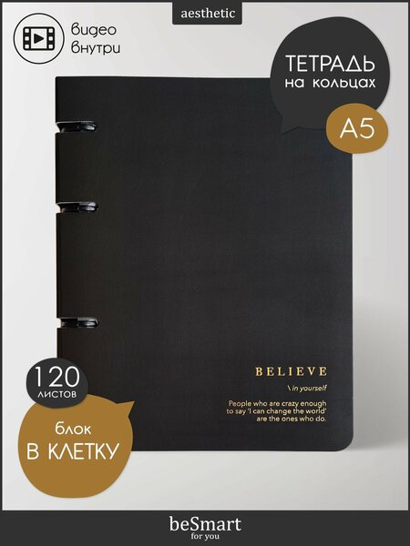 Тетрадь на кольцах от beSmart - это удобный и практичный вариант для тех, кто предпочитает использовать тетрадь долгое время, просто меняя блоки, когда они заканчиваются. Благодаря разъемному механизму, вы можете легко менять листы и перестраивать порядок внутри тетради по своему усмотрению. Это особенно удобно для тех, кто замечает ошибки в записях или хочет добавить дополнительные материалы. Блочная тетрадь также отличается прекрасным дизайном. Матовая ламинация и скругленные уголки мягкой картонной обложки делают эту тетрадь приятной на ощупь, придают ей эстетичный и стильный внешний вид и увеличивают срок службы. Внутри тетради - 120 листов в клетку, что обеспечивает достаточно места для записей и заметок. Белая бумага, используемая во внутреннем блоке, имеет плотность 65 г/м2, что делает ее достаточно прочной и удобной для письма. Эта тетрадь также идеально подойдет как школьная канцелярия или канцтовары для офиса. Ее формат А5 (163х212 мм) является оптимальным для различных видов записей, как учебных, так и рабочих. Если вы ищете милую и стильную канцелярию, то эта тетрадь на кольцах А5 формата под сменные блоки - отличный выбор! Тетради beSmart - это надежные партнеры для школьника, студента или офисного работника, которые ценят качество и удобство в своей канцелярии. Позвольте себе иметь эстетичную и практичную тетрадку, которая всегда будет под рукой для ваших записей.
