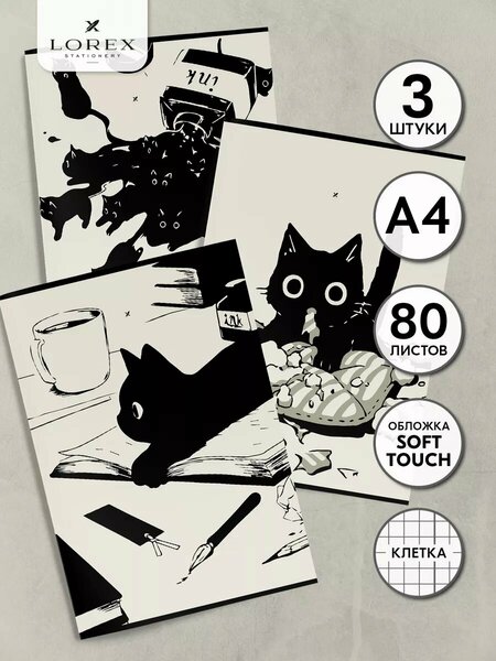 Тетради в клетку набор 3 штуки 80 листов А4 Lorex с котиками созданы для ценителей минимализма. Набор толстых тетрадей 80 листов формата А4 поможет вместить все конспекты. Большие тетради школьные однотонные подойдут для студентов и школьников старших классов. Общие тетради универсальны и подойдут для любых предметов, для подготовки к ЕГЭ и экзаменам. Школьные канцтовары Lorex - это эстетичные тетради, которые будут радовать весь учебный год!
