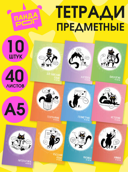 Набор предметных тетрадей 40 листов со справочным материалом - это практичный комплект школьной канцелярии, который идеально подходит для учащихся средних и старших классов. В набор входят 10 предметных тетрадей, каждая из которых предназначена для определенного урока: алгебры, английского языка, биологии, географии, геометрии, истории, литературы, русского языка, физики, химии, информатики и обществознания. Белая бумага 100% белизны с красными полями. Формат А5. Тетрадки оснащены удобной скрепкой и плотной картонной обложкой с яркой печатью. Стильный и современный дизайн тетрадей подходит как для мальчиков, так и для девочек разного возраста. Комплект предметных тетрадей упакован в термоплёнку с вкладышем, что обеспечивает сохранность и целостность тетрадок. Тематические тетради Пандарог - незаменимый помощник для школьников, которые стремятся быть организованными, практичными и стильными. Набор станет отличным решением для организации учебного процесса в школе.