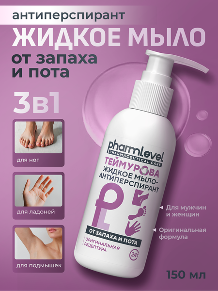Теймурова Жидкое мыло для рук и ног с дозатором 150 мл Антиперспирант от запаха и пота