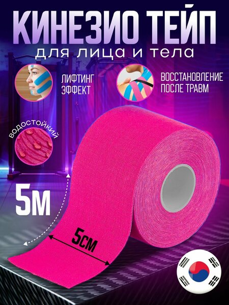 Тейпы для тела 5смх5м, Кинезио тейпы для лица от морщин и отеков, гипоаллергенный, розовый