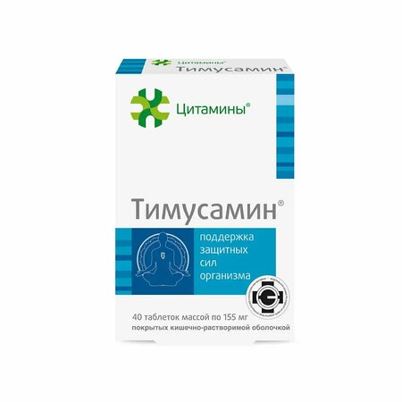 Состав на 1 таб.: тимусамин порошок* 10 мг * комплекс полипептидов и нуклеиновых кислот, полученный из тимуса крупного рогатого скота. Вспомогательные вещества: лактоза (наполнитель), сахар-песок (загуститель), крахмал картофельный (разрыхлитель), кальция стеарат (агент антислеживающий), дисперсия сополимера метакриловой кислоты (кишечнорастворимое покрытие), пропиленгликоль (эмульгатор).