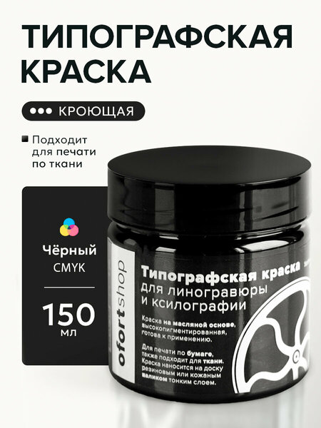 Типографская краска на масляной основе подходит как для печати по бумаге, так и по ткани, включая футболки и текстильные изделия. После высыхания она становится стойкой, не смывается водой и выдерживает ручную или деликатную стирку.