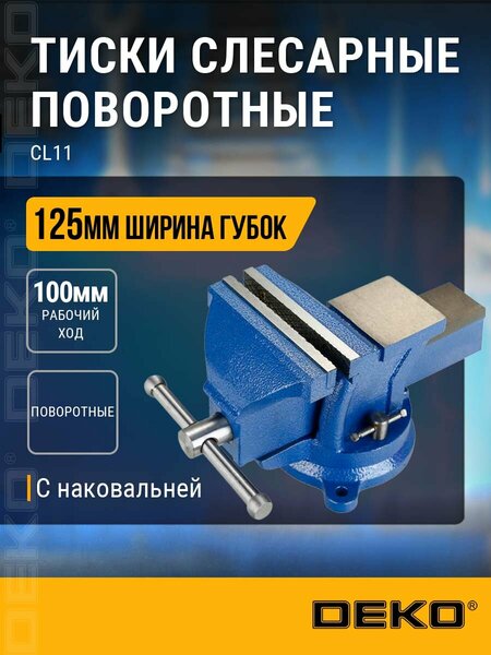 Чугунные тиски DEKO CL11 — профессиональный слесарный инструмент для надежной фиксации заготовок. Модель с шириной губок 125 мм и рабочим ходом 100 мм предназначена для выполнения точных слесарных и столярных работ. Тиски крепятся к рабочей поверхности болтами, обеспечивая устойчивость при обработке деталей. Поворотный механизм основания позволяет менять угол положения для удобного доступа к заготовке. Стальные губки гарантируют износостойкость и плотный захват. Эти настольные слесарные тиски подходят для мастерских, гаража или домашнего использования. Компактные размеры делают их практичным решением для сверлильного станка, станочных операций и ручной обработки материалов. Тиски слесарные настольные деко — универсальные настольные мини-тиски, сочетающие функциональность для профессиональных задач и бытового ремонта.