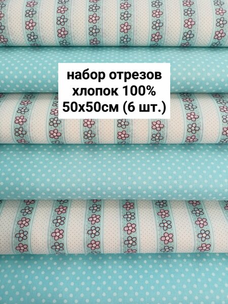 Ткань для шитья и рукоделия. Набор отрезов ткани. 6 отрезов 50х50см каждый. Хлопок.