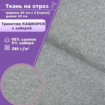 ткань трикотаж Кашкорсе с лайкрой для одежды/манжет/горловины Кашкорсе – трикотажная ткань, которая чаще всего используется для пошива платьев, свитеров и водолазок, шапок, спортивной, домашней и детской одежды, манжет и воротников на спортивную одежду, одежду для отдыха. Данная ткань отличается высокой эластичностью, которая при этом отлично сохраняет форму даже после многочисленных стирок. Уход за тканью · Стирка при температурном режиме не более 40 градусов · Стирать вручную или на режиме «деликатной стирки» в стиральной машине · Гладить с изнанки, температура утюга не более 150 градусов. Характеристики: · Ширина чулка: 50-60 см · Состав: 97% хлопок, 3% лайкра · Плотность: 215 г/м2 · Производство: Узбекистан *Чулок-полотно кругловязаное, без кромки Цвет материала может отличаться по тону в зависимости от настроек вашего монитора!