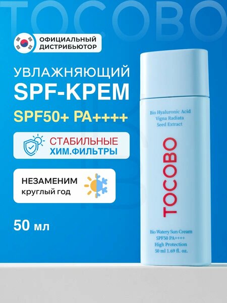 {"widgets":{"@market/Ecommerce":{"/content/page/fancyPage/defaultPage/commonEcommerce/ecommerce":{"env":"production","commonParams":{"pageType":"other","pageId":"market:product-osku","siteType":"desktop","userId":"4148ce62e2d391ed695095db8a3400b193539883d1c26a9e6d20ec34632f9bd8","regionId":10335},"pageSpecificParams":[{"ecommerce":{"detail":{"products":[{"id":"94312868","name":"Tocobo Крем солнцезащитный с увлажняющим эффектом BIO WATERY SUN CREAM SPF50+ PA++++ 50 ml","brand":"Tocobo","categoryId":17437157,"hid":8476103,"vendorId":37203250,"price":160000,"oldPrice":310000}]}},"event":"PRODUCT_VIEW"}],"dataLayerOptions":{"isDebugMode":false,"srcIframe":"//yastatic.net/s3/market-b2c-export-static/uz/gtag.html?pageType=other&pageId=market%3Aproduct-osku&siteType=desktop"}}}},"meta":{"/content/page/fancyPage/defaultPage/commonEcommerce/ecommerce":{"name":"@market/Ecommerce"}},"collections":{"ecommerce":{"18098937667760808872":{"categoryId":17437157,"id":"94312868","category":"Солнцезащитные средства для лица","vendorId":37203250,"brand":"Tocobo","currency":"UZS","name":"Tocobo Крем солнцезащитный с увлажняющим эффектом BIO WATERY SUN CREAM SPF50+ PA++++ 50 ml","productId":"94312868","hid":8476103,"oldPrice":310000,"price":160000,"productTitle":"Солнцезащитный крем для лица SPF50 PA++++ Bio Watery Sun Cream"}}}}