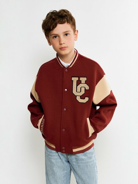 Детская куртка-бомбер для мальчика выполнена из мягкого хлопкового флиса с начесом на изнанке, что обеспечивает дополнительное тепло и комфорт при носке. Модель свободной посадки comfort с модной спущенной линией плеча, что позволяет ребёнку свободно двигаться. Спереди расположены функциональные карманы, украшенные небольшой вышивкой с надписью "URBANAGE" [англ. - "Городской режим"], подчёркивающей современный городской стиль. Центральная застёжка на кнопки, подобранные в тон основной ткани, делает куртку удобной и практичной. На груди также расположена вышивка-патч в виде букв, добавляющая дополнительный акцент. Короткий воротник-стойка, а также низ изделия и рукавов оформлены полосатым рибом, который не только обеспечивает лучшее прилегание к телу, но и добавляет стильный элемент в общий образ. Этот бомбер отлично подойдёт для создания модного и удобного повседневного аутфита для активных мальчиков.