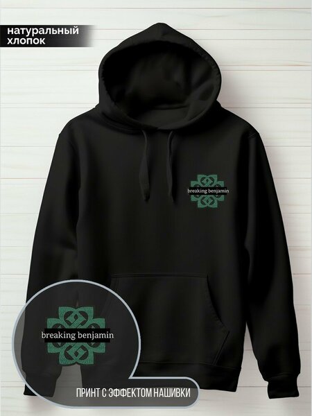 Оригинальная толстовка с нашивкой спереди. которая придает ей особый шик и уникальность. Нашивки могут иметь различные дизайны. Это добавляет индивидуальности вашему образу и позволяет выразить вашу личность. Идут размер в размер как указано в товаре. Материал толстовки - 100% хлопок, слой ровный, белоснежно белый, комфортный к телу и удобный в носке. Толстовка имеет манжеты и низ на широкой резинке для удобства и комфорта во время носки. Карман «кенгуру», вязка «резинка» позволяет этой ткани отлично тянуться. Толстовка с капюшоном, худи унисекс (мужское и женское) черное из хлопка с нашивкой музыка Breaking Benjamin (брейкинг бенджамин, Бенджамин Бернли, ню-металл, рок, металл, панк) - 408