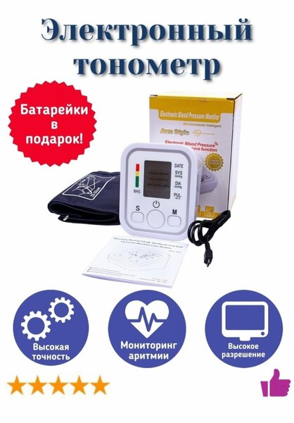 Наш автоматический тонометр - это электронный аппарат для измерения давления и пульса. Медицинский прибор идет с гарантией 1 год! Прибор поставляется с комплектом батареек и usb- кабелем. Вы сможете мерить артериальное давление дома, а также брать устройство в поездки. Размер манжеты универсальный: 22-32 см, подойдет на детскую и на большую руку. Ручной измеритель давления станет настоящей находкой для мужчин и женщин, страдающих гипертонией и гипотонией, а встроенная память для двоих - поможет отслеживать данные в динамике. Прибор обладает такой же точностью, как и тонометры известных фирм: omron (омрон), and, bwell. Тонометр, как и другая бытовая техника идет с гарантией от производителя. Не экономьте на здоровье, купите отличный подарок бабушке, дедушке, свекрови, папе, маме. В каждом наборе имеется гарантийный талон с данными для обращения по всем вопросам.