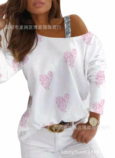 Привлекательный принт "любовь" на бретельках придает футболке уникальный и модный вид. Футболка имеет прилегающий силуэт, что подчеркивает фигуру и делает образ более сексуальным. Футболка выполнена в розовом цвете, что добавляет ей яркости и игривости. Футболка с длинными рукавами и круглым вырезом на вороте обеспечивает комфорт и свободу движений в течение всего дня. Футболка изготовлена из хлопка и льна, что делает ее мягкой и приятной на ощупь.