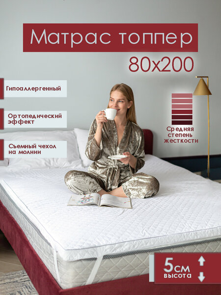 Топпер матрас 80х200 см, наматрасник на кровать, матрас беспружинный на диван