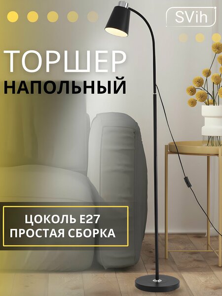 Напольный торшер — идеальное решение для вашего дома. Он добавит уюта в гостиную и позволит наслаждаться семейным отдыхом. Этот стильный светильник подойдёт к любому интерьеру. Металлические детали подчеркнут индустриальный стиль лофт, а лаконичный дизайн впишется в любой стиль. Установите его в спальне, чтобы не мешать своей второй половинке светом. Утром приглушённый свет поможет вам спокойно собраться на работу или учёбу, а вечером — почитать книгу или поработать. Покупая лампу для спальни или детской комнаты, вы заботитесь о своих близких. Чтение книги ребёнку перед сном или общение станут ещё приятнее. Мягкий рассеянный свет LED-лампы не помешает малышам засыпать. Поворотный светильник на ножке пригодится на кухне или балконе, где дополнительное освещение никогда не бывает лишним. Высота торшера оптимальна, а кабель позволяет легко перемещать его на небольшие расстояния. Безопасное исполнение с лёгким верхом и устойчивым основанием оценят семьи с детьми или домашними животными. Благодаря своему весу, светильник сложно опрокинуть, а лёгкий верх не причинит вреда вашим близким. Матовые плафоны и конусообразная форма обеспечивают равномерное распределение света. В напольном торшере используются стандартные лампочки с цоколем E27, которые легко найти в любом магазине. Сделав такое приобретение, вы сами создадите уют в своём доме. Эта недорогая покупка сделает ваши вечера тёплыми и приятными. Даже в выключенном состоянии лампа выглядит стильно и современно.