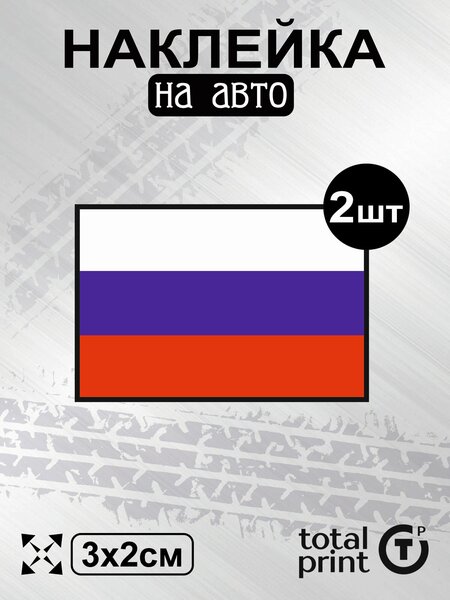 TotalPrint Наклейка с ламинацией на авто флаг России, 3х2см, 2шт.