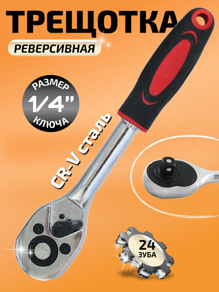 Трещотка 1/4 дюйма 24 зуба 155 мм с двухкомпонентной ручкой, реверсивная