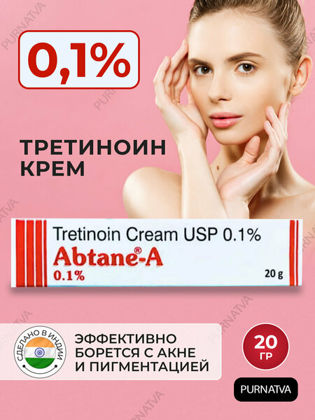 Третиноин крем 0.025% Абтейн-A (Tretinoin cream USP 0.025% Abtane-A) От акне и Пигментации 20 г третиноин - это один из самых знаменитых и эффективных гелей в уходе за проблемной кожей, против возрастных изменений кожи и морщин. Показания к применению:- Устраняет угри и препятствует их дальнейшему появлению.- Разглаживает морщины, в том числе мимические.- Сужает поры.- Возвращает коже упругость и здоровый цвет.- Нормализует работу сальных желез (устраняет жирный блеск).- Убирает бугристость.- Борется с пигментацией, вызванной воздействием ультрафиолета.- Обновляет кожу, разглаживает морщины. Перед нанесением геля необходимо очистить кожу средствами для умывания. Кожа должна полностью высохнуть. Крем наносится на пораженную область по вечерам, перед отходом ко сну.