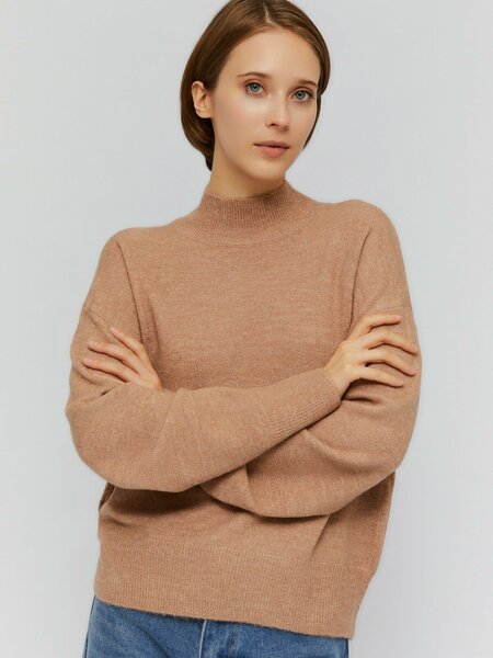 Трикотажный свитер с воротником-стойкой: стиль и комфорт Женский свитер с воротником-стойкой выполнен из тонкого вязаного трикотажа, что обеспечивает комфорт и уют в прохладную погоду. Свободный силуэт и спущенная линия плеча придают образу непринужденность и расслабленность. Воротник-стойка и широкая вязаная резинка-риб на манжетах и нижней кромке добавляют модели изысканности и стиля. Свитер представлен в размерах S, M и 44, что позволяет выбрать подходящий вариант для разных типов фигур. Состав свитера включает 31% полиэстера, 27% нейлона и 42% акрила, что гарантирует прочность, износостойкость и сохранение формы изделия после многочисленных стирок. Выбирая трикотажный свитер с воротником-стойкой, вы получаете стильный, комфортный и практичный элемент гардероба, который станет отличным дополнением к вашим теплым и уютным образам.