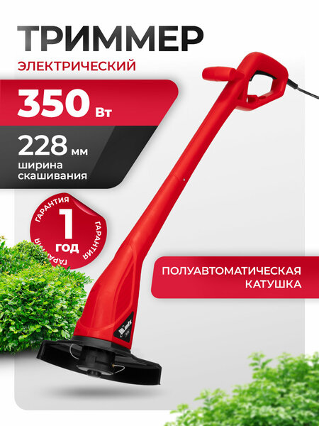 Электрический триммер MTX TX-350 96633 мощностью 350 Вт, с полуавтоматической катушкой, обеспечивает ширину прохода 228 мм и предназначен для скашивания травы в саду, огороде и на небольшом приусадебном участке. Частота вращения оснастки составляет 12000 об/мин, что гарантирует высокую эффективность работы. Триммер оптимален для обработки участков возле деревьев и кустарников, а также других мест, недоступных для колесной газонокосилки. Легкий и компактный инструмент рекомендован для бытового использования. Преимущества: Защита от перегрева — при превышении допустимой температуры двигатель останавливается для предотвращения поломки. Безопасность — прочный кожух защищает пользователя от летящей травы, веток и других твердых предметов, функция блокировки исключает случайный запуск двигателя. Полуавтоматическая подача лески — для удлинения корда достаточно слегка ударить катушкой о землю, не останавливая двигатель. Автоматическая подрезка лески — на защитном кожухе предусмотрен нож, укорачивающий корд до нужной длины. Ремонтопригодность — благодаря резьбовому соединению с валом катушку можно заменить при необходимости. Продуманная конструкция — производитель предусмотрел специальный держатель для кабеля. Удобное хранение и транспортировка — разборная конструкция состоит из 2 частей.