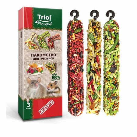 Лакомство Triol ORIGINAL палочки ассорти (с фруктами, с овощами, с мёдом и хитином) для грызунов (75 гр)