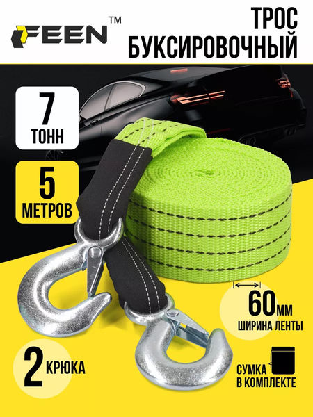 Автомобильный буксировочный трос - незаменимый автоаксессуар. Оптимальный размер и прочная лента обеспечивают безопасность и надежную дистанцию буксировки. Трос для буксировки авто Feen с крюками и длиной 5 метров подходит только для буксировки автомобилей со снаряженной массой до 3,5 тонн. Статический трос выполнен из нейлона, армирован прочными нитями. Морозостойкая, влагостойкая лента устойчива к агрессивному воздействию. Стальные крюки гарантируют надежное крепление. Трос оснащен петлями, которые защищают стропу от внешнего воздействия и позволяют быстро закрепить его. Трос предназначен для буксировки различных транспортных средств, таких как легковые автомобили, внедорожники, квадроциклы, джипы, лодки и грузовики. Также трос для авто может использоваться в качестве удлинителя для лебедок. Важно помнить, что при эксплуатации троса следует избегать его провисания и рывков, а также предотвращать попадание троса под колеса. В реальных условиях невозможно достичь абсолютно плавной буксировки, поэтому нагрузка на дорожный трос может превышать массу транспортного средства, которое он буксирует. Поэтому важно выбирать трос, соответствующий необходимой нагрузке (5т, 7т, 10т, 12т, 15т).