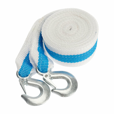 Буксировочный трос (самый универсальный и оптимальный вариант) белого цвета понадобится в случае поломки автомобиля на трассе, заноса в сугробы или грязь: вызывать эвакуатор совершенно не обязательно. Изделие способно выдержать как резкий рывок, так и плавную буксировку. Является эластичным приспособлением для мягкой сцепки, способным снизить кинетическую энергию. Лента устойчива к сырости, резким перепадам температур, поэтому актуальна в любое время года и при любых погодных условиях (снегопаде, ливне, урагане). Длина троса соответствует ППД, является золотой серединой: составляет 5 метров. Изделие обладает грузоподъемностью до 7 тонн и при продолжительной эксплуатации не меняет свои линейные размеры. Оснащено 2-мя металлическими крюками с пружинным фиксатором - не слетают при рывках во время езды по бездорожью. Рекомендуем держать буксировочный трос в постоянном натяге, исключая касание дороги. Нагрузка равномерно распределяется на трос, поэтому материал (полипропилен) позволит использовать ленту многократно при необходимости. Приспособление дополнено чехлом для хранения и транспортировки троса в автомобиле. Даже в условиях испытаний лента не поддалась разрыву, достойно выдержала заявленную нагрузку.
