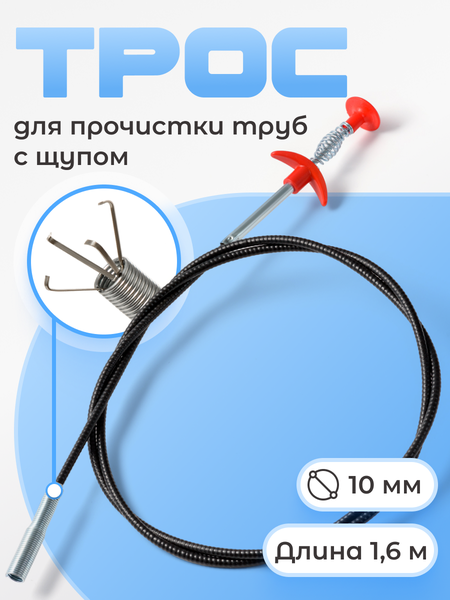 Достоинства:Отличный трос для труб. Недостатки:Недостатков не выявлено. Комментарий:Вещь очень полезная в хозяйстве. Качество исполнения отличное!!!