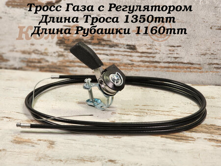 Трос газа Культиватора, Мотоблока, Мопеда, Скутера в сборе с ручкой (Трещетка) 1350мм/1160мм