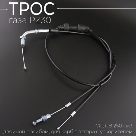 Трос газа PZ30 (L-1185, двойной с згибом, для карбюратора с ускорителем) CG, СB 250 см3