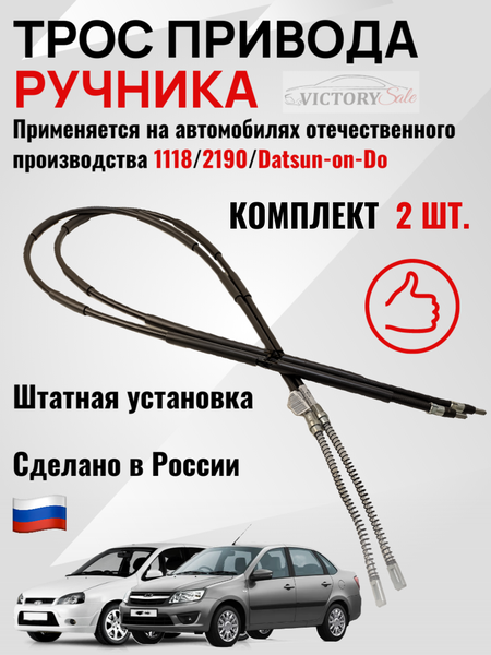 Трос привода ручника для Лада Калина/Гранта/Datsun On-Do - это комплект из двух тросов стояночного тормоза, которые обеспечивают надежное и безопасное торможение автомобиля. Трос ручного тормоза устанавливается на легковые автомобили, такие как Datsun On-Do, LADA Kalina и LADA Granta. Место установки тросов - снизу автомобиля, слева и справа, а также на задний стояночный тормоз. Трос привода ручника изготовлен из металла, резины и силикона, что обеспечивает его прочность и долговечность. В комплекте вы получаете два троса стояночного тормоза, что позволяет обеспечить надежное торможение автомобиля в любых условиях.