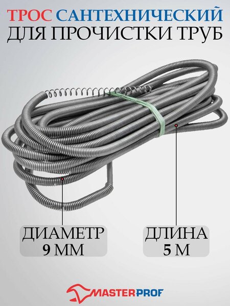 Стальной сантехнический трос эффективен для прочистки канализационных труб и водостоков. Наконечник в виде пружины легко справляется с застарелыми засорами. Изготовлен из качественной стали. Диаметр: 9 мм Длина: 500 см Трос сантехнический для прочистки канализационных труб 9 мм х 5 м: эффективное решение для вашей сантехники Прочистка канализационных труб и водостоков станет намного проще и быстрее с помощью стального троса для прочистки канализационных труб от Masterprof. Наконечник в виде пружины: легко справляется с застарелыми засорами Трос оснащен наконечником в виде пружины, который легко справляется с застарелыми засорами и предотвращает повреждение труб. Изготовлен из качественной стали: долговечность и надежность Трос изготовлен из качественной стали, что гарантирует его долговечность и надежность в использовании. Диаметр и длина троса: оптимальные параметры для работы С диаметром 9 мм и длиной 5 м, этот трос подходит для прочистки труб с минимальным диаметром 9,0 мм. Серый цвет и вес: стильный и практичный выбор Трос имеет стильный серый цвет и весит всего 0,92 кг, что делает его удобным и легким для транспортировки и использования. Выбирая стальной трос для прочистки канализационных труб от Masterprof, вы получаете надежный и эффективный инструмент для прочистки труб и водостоков, который облегчит вашу работу и обеспечит долгосрочную службу.