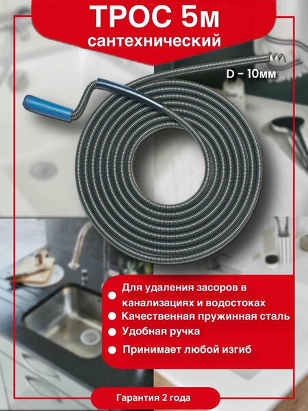 Трос сантехнический пружинный L5 м D10 мм – это незаменимый инструмент для быстрого и эффективного устранения засоров в трубопроводах. С троса для прочистки труб от засоров помощью вы сможете легко и быстро очистить трубы от накопившихся отходов и загрязнений. Длина троса 5 метров и диаметр 10 мм позволят вам добраться до самых труднодоступных мест. Прочная стальная проволока гарантирует долгий срок службы и надежность работы инструмента. Специальная ручка для вращения обеспечит удобство и комфорт при использовании приспособления для чистки сифонов в ванне раковине. Этот сантехнический трос идеально подходит для использования в квартирах, домах и офисах. Не теряйте времени и денег на вызов сантехника – с этим тросом вы сами сможете справиться с небольшими засорами без лишних усилий. Приобретайте трос пружинный и будьте уверены в чистоте и исправности ваших трубопроводов! Страна производства Россия. Гарантия 2 года.