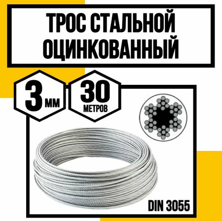 Трос стальной оцинк. для растяжки DIN 3055 3 мм 30 метров