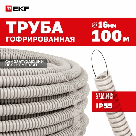 Трубы гофрированные из ПВХ EKF-Plast EKF PROxima – это профессиональная кабеленесущая система для прокладки силовых и слаботочных линий скрытого типа внутри зданий и помещений различного назначения. Чаще всего гофрированные трубы используются при прокладке электропроводки и кабеля в стенах (по стенам), потолках (по потолкам), полах жилых, административных и производственных помещений. Благодаря эластичности трубы прокладка кабеля осуществляется с минимальными затратами труда и времени, независимо от типа прокладки и помещения, а также практически без дополнительных аксессуаров. Трубы гофрированные изготавливаются из самозатухающей ПВХ-композиции, исключающей возможное возгорание кабеля от короткого замыкания, а также предотвращающей распространение огня по гофрированной трубе. Также труба защищает проложенный кабель от механических повреждений и является дополнительным изолятором.