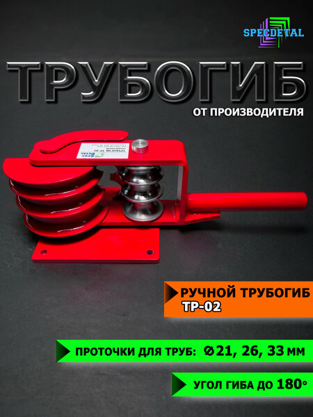 Трубогиб спецдеталь ТР-02-Усиленный – это надежный ручной инструмент, предназначенный для гибки труб с внешним диаметром 21, 26 и 33 мм. Особенность данного устройства заключается в его прочной конструкции и удобстве использования, что делает его идеальным выбором для профессионалов и любителей строительства и ремонта.