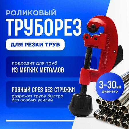 Представляем ручной роликовый труборез-резак d-3-30мм — ваш идеальный помощник для резки медных, латунных и алюминиевых трубок диаметром от 3 до 30 мм. Этот высокоэффективный инструмент оснащен круглым режущим ножом, а также регулировочным винтом с двумя опорными роликами, которые гарантируют идеальную поддержку трубы во время работы. Благодаря корпусу, изготовленному методом точного литья, труборез обладает исключительной прочностью и долговечностью. Компактный и легкий дизайн инструмента обеспечивает удобство использования, особенно в ограниченных пространствах. Наш роликовый труборез — это незаменимый инструмент для специалистов по монтажу и ремонту водопроводных и отопительных систем. Он позволяет быстро и точно резать трубки различных диаметров, исключая необходимость в дополнительных усилиях и инструментах. С ним ваша работа станет проще и эффективнее.