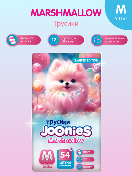 Трусики JOONIES "Marshmallow", впитывающие, белые, №54, для малышей 6-11 кг размер M