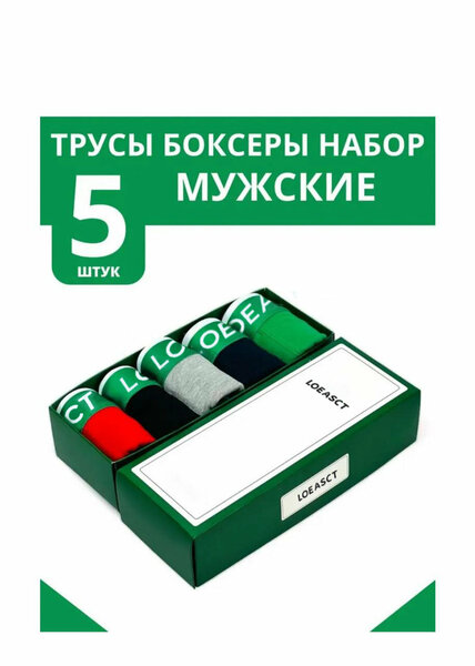 Подарочный бокс мужских трусов-боксеров - это уникальное предложение, которое подойдет как для взрослых, так и для мальчиков подростков. В коробке 5 штук однотонных обтягивающих боксеров из дышащего хлопка с широкой резинкой, которые обеспечат комфорт и удобство в любой ситуации: при занятиях спортом, беге или для сна. Летние спортивные трусы для мужа и сына - отличный вариант нижнего белья, который можно купить для себя или в качестве подарочного набора на День Святого Валентина, 23 февраля или другой праздник для брата, папы. Благодаря качественным материалам плавок и надежной фиксации вы будете чувствовать себя уверенно и комфортно абсолютно везде. Кроме того, на паре шорт расположена не яркая надпись, что делает еще более стильными и модными, и их возможно использовать как летние плавки. Хлопковые боксерские большие трусики в комплекте эстетичны, поскольку визуально делают фигуру более подтянутой.