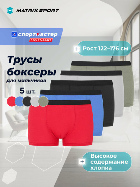 Трусы боксеры для мальчиков Matrix Sport выполнены из комбинации хлопка и полиэстера, что обеспечивает максимальный комфорт и долговечность. Мягкая ткань детских трусов приятно ощущается на коже, а полиэстер отвечает за прочность изделия и устойчивость к износу. В комплекте 5 шт. трусов для детей или подростков. Эта модель обладает отличной посадкой и не ограничивает движения ребенка. Выбор качественной одежды для ребенка — залог его хорошего самочувствия и настроения. Натуральные и безопасные материалы снижают риск раздражений и аллергии, приятны на ощупь и обеспечивают вентиляцию. Продуманный дизайн помогает сохранять комфорт на протяжении всего дня, будь то прогулка, учеба или активные игры. Поэтому так важно выбирать вещи, которые сочетают практичность, стиль и заботу о детском здоровье.