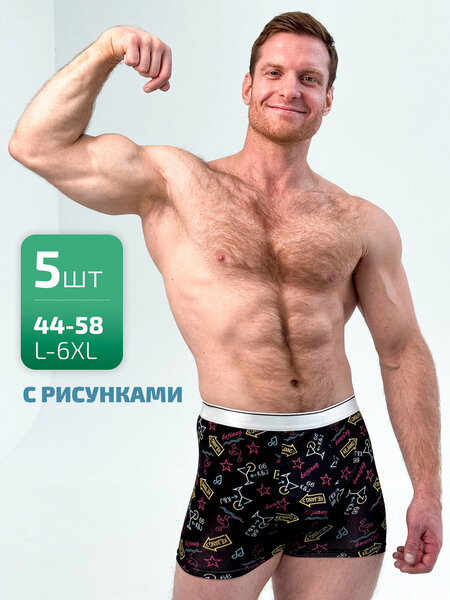 Трусы набор 5 штук - это комплект из пяти пар мужских боксеров, которые станут отличным дополнением к вашему гардеробу. Трусы изготовлены из высококачественного материала - 94% полиэфирное волокно и 6% спандекс. Это обеспечивает комфорт и долговечность, а также позволяет ткани "дышать", предотвращая раздражение и обеспечивая оптимальный микроклимат. Модель трусов - боксеры, что гарантирует удобство и свободу движений. В наборе представлены трусы пяти разных цветов с рисунками. Это позволяет комбинировать их с различными элементами гардероба и создавать стильные образы. Выбирая трусы набор 5 штук, вы получаете качественный, удобный и стильный комплект, который прослужит вам долгое время и станет незаменимым элементом вашего гардероба.
