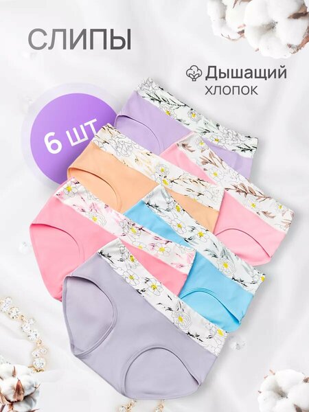 Бренд представляет набор женских трусов из хлопка, идеальных для повседневного использования. Эти слипы средней посадки обеспечивают максимальный комфорт благодаря хлопку с эластаном и утягивающей резинке. Модные цветовые гаммы, мягкий материал, аккуратный срез и удобство носки делают их идеальным выбором для всех возрастов. Подарите себе или близким радость комфортного и стильного белья . Трусы женские набор - это идеальный выбор для тех, кто ценит комфорт и качество. Этот набор трусов для женщин из хлопка обеспечивает максимальное удобство в течение всего дня. Хлопок с добавлением эластана делает их мягкими и приятными на ощупь, а также обеспечивает идеальную посадку. Набор трусов женских хлопок включает в себя шесть штук трусов, каждая из которых выполнена с учетом анатомических особенностей женского тела. Средняя посадка, аккуратный срез и утягивающая резинка делают эти трусы идеальными для повседневного ношения. Женщина, выбравшая комплект трусов обеспечивает себе комфорт на весь день. Благодаря высококачественному хлопку, эти трусы обеспечивают отличную циркуляцию воздуха и поддерживают интимное здоровье. Трусы женские набор слипы - это не только удобство и комфорт, но и стиль. Разнообразие цветовых гамм позволяет каждой женщине выбрать идеальный для себя набор. Будь то базовый пастельный комплект или яркий праздничный - каждая женщина сможет найти то, что ей по душе. Выбирайте трусы женские набор - и обеспечьте себе комфорт и удобство на весь день!