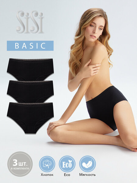 Трусы женские набор - 3 шт. Трусы женские слипы SiSi BASIC SI5208 Slip (maxi) с высокой посадкой и широкой кружевной тесьмой по талии. Выполнены из высококачественного хлопка с добавлением эластана, подчеркивают женственный силуэт. Мягкий хлопок создает ощущение максимального комфорта, позволяет коже дышать и подходит даже для чувствительной кожи. Эластановая нить в составе увеличивает износостойкость, способствует идеальному облеганию белья. Женственная ажурная тесьма на поясе обеспечивает надежную фиксацию белья на теле и придает ему изысканность. Женские трусы слипы SiSi BASIC SI5208 Slip (maxi) - практически незаметны под облегающей одеждой, они отлично дополнят повседневный бельевой гардероб благодаря удобному крою и лаконичному дизайну. Комфортное нижнее белье и отличный подарок любимой маме, подруге, жене, женщине на любой праздник. Цвета: Bianco - белый; Avorio - слоновая кость; Nero - черный В ассортименте бренда SiSi представлен широкий выбор товаров: Носки. Купальники. Чулки. Колготки на любой случай: на каждый день, тонкие и плотные, утягивающие, цветные, с рисунком и др. Одежда для дома и улицы. Нижнее белье. Бюстгальтеры. Трусы женские: хлопок, микрофибра, модал, кружевные; бесшовные; гладкие, слипы, стринги, шорты, бразильяна; с высокой, средней и низкой посадкой; классическая расцветка, с рисунком и яркие трендовые цвета.