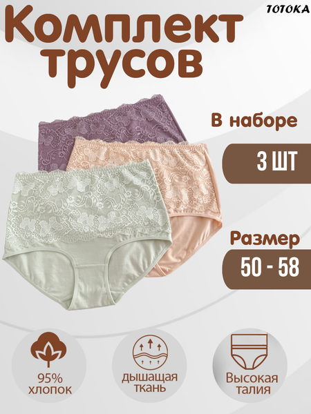 Трусы женские набор 3шт с высокой талией, большие размеры, 6XL - стильный и комфортный выбор для женщин с пышными формами. Трусы выполнены из высококачественной хлопковой ткани с добавлением спандекса, что обеспечивает мягкость, эластичность и долговечность изделия. Состав материала: 95% хлопок, 5% спандекс. Модель трусов - слипы, с высокой линией талии, что позволяет комфортно носить их в течение всего дня. Декор в виде кружева добавляет изысканности и женственности. В комплекте идут трусы трех цветов: бордовый, бордовы, бежевый и салатовый. Уход за изделиями прост: бережная стирка при температуре 30°C. Выбирая трусы женские набор 3шт с высокой талией, большие размеры, 6XL, вы получаете стильный, комфортный и качественный продукт, который прослужит вам долгое время.